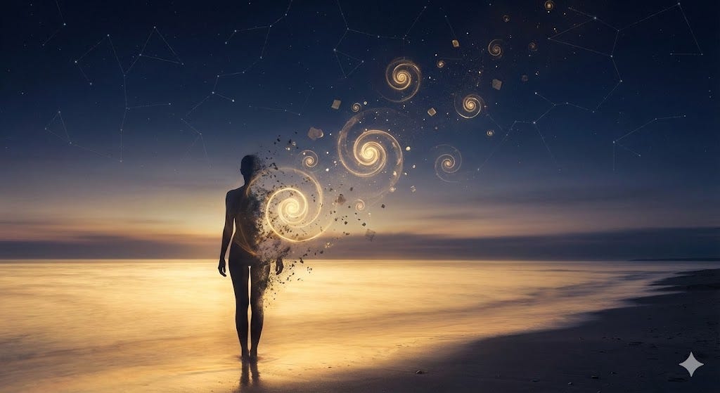 Buddhism, in its quiet profundity, tells us: do not cling even to light. The self we think we are is a constellation of conditions, not a permanent traveler. Yet it does not deny beauty—it refines our gaze, teaching us to see truth not in what persists, but in what passes perfectly. Nirvana is not a place, but the falling away of distortion—the final alignment.